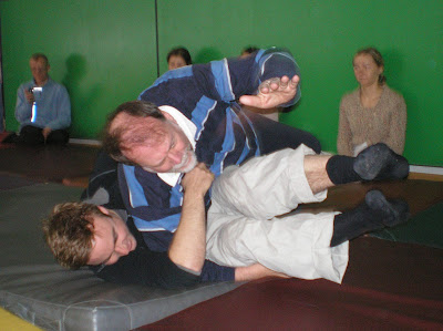 There were many obvious similarities between Original Play and aikido: In Original Playone blends with a partners/s motion (respects ki) and protects you and he during the dance. We practices playing with aggressors (people who weren’t playing too) and this seemed almost identical to high level aikido, ju-jitsu, capoeria or Systema. Surprisingly Fred seemed quite down on martial arts saying that they were about getting better at fighting, not about this other universe of play. He suggested that there was always a choice I life between fear which leads to a certain mindset and then fight, flight or freeze, and love which leads to the infinite possibilities of play. While I agree with Fred that there are perhaps only ten people worldwide who really play martial arts and it takes a long, long time, I believe that play is still an aspect many “combat” systems.