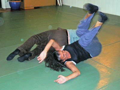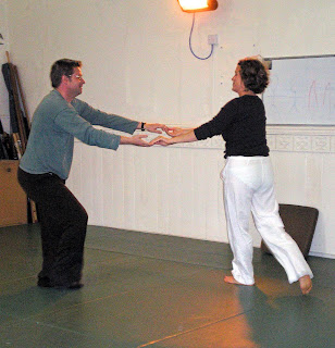 We started by connecting to self – breath, awareness, body, feelings and needs (meditation and NVC inspired), then to gravity by rolling around and walking (contact improvisation inspired) then walked in the room connecting to the space before connecting to each other in a series of aikido and Being In Movement inspired exercises that I use regularly in Holistics.